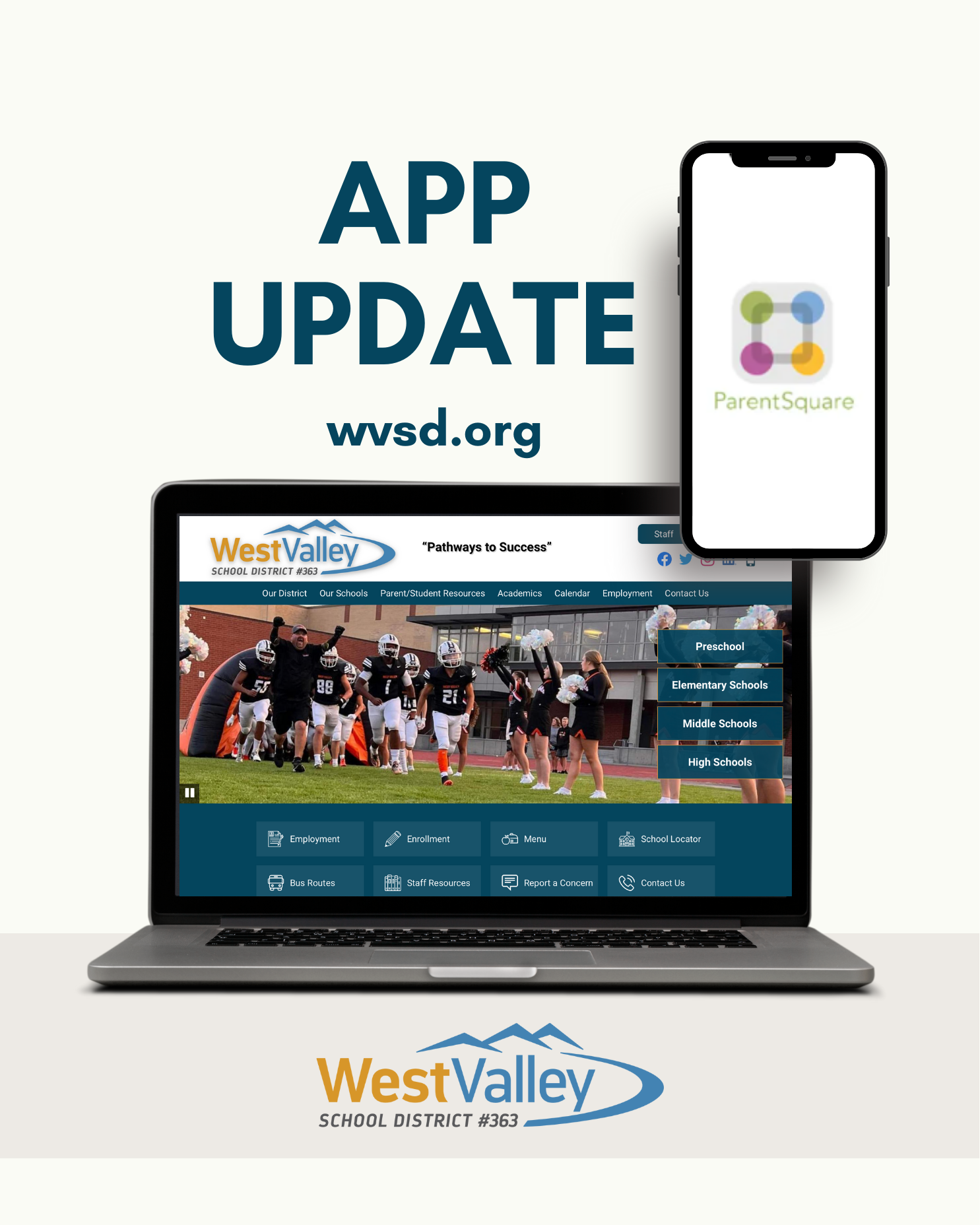 Since the app feeds from our website, wvsd.org, here are a few alternatives of how you can keep updated on your mobile device:
